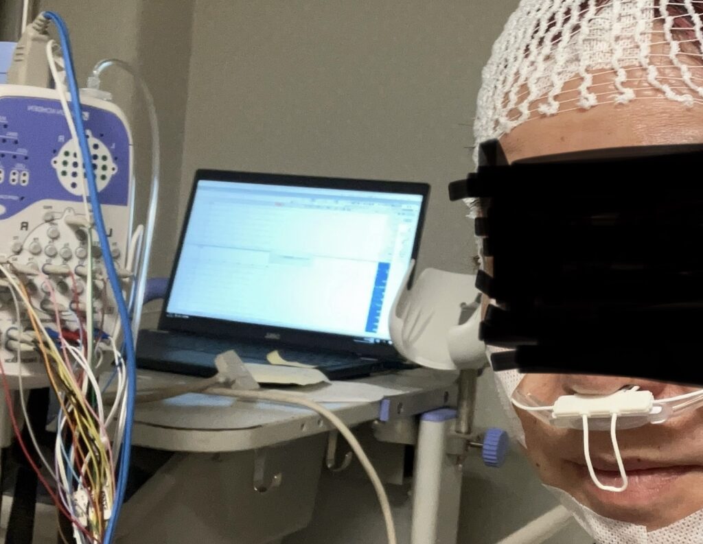 担当の看護師さんが入れ代わり立ち代わり、体温を測ったり体の調子を尋ねに来てくれます。その後、事前説明通り食事の後パジャマに着替えて待っていると女性が二人たくさんの機械をもって登場。顔、からだ、手指、足にもセンサーを貼り付けます。これ、男性患者のときはどうするのかしら?と考えてしまうような密着作業。