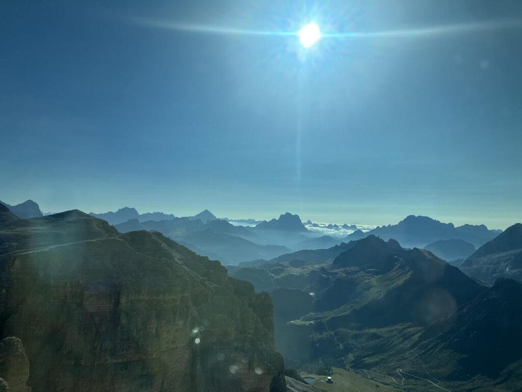 雲海、氷河、アルプス、切り立ったドロミテならではの岩肌。バラエティに富んだ美しい景色が目に飛び込んできて、深呼吸しすぎて過呼吸になりそう!