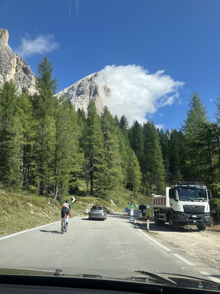 次の目的地はコルティナ・ダンペッツォ。いよいよオリンピックの本会場。ルートを考えていた時にAIが「最高の眺め」と請け合ってくれ、たしかに景色は良いのですが💦狭くて、アップダウン多くて、とにかくスリリング。