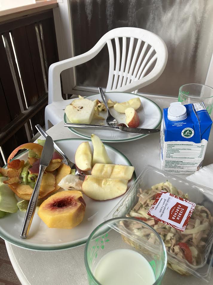 なぜかここもアパートメントと思い込んで食べ物を買い込んできたらキッチンがなくて、お皿とナイフ、電気ケトルなどを借りて簡単な夕食。