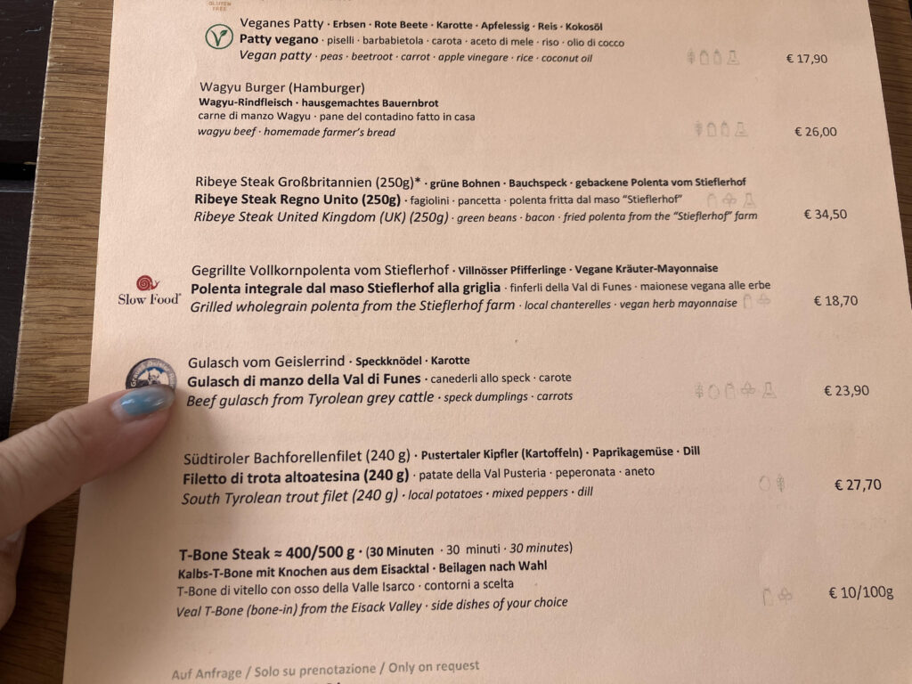 この辺り、南チロルと呼ばれる地域はオーストリア=ハンガリー帝国の領土だった期間が長く、イタリアなのにドイツ・オーストリアの食文化が色濃く残っているそう。