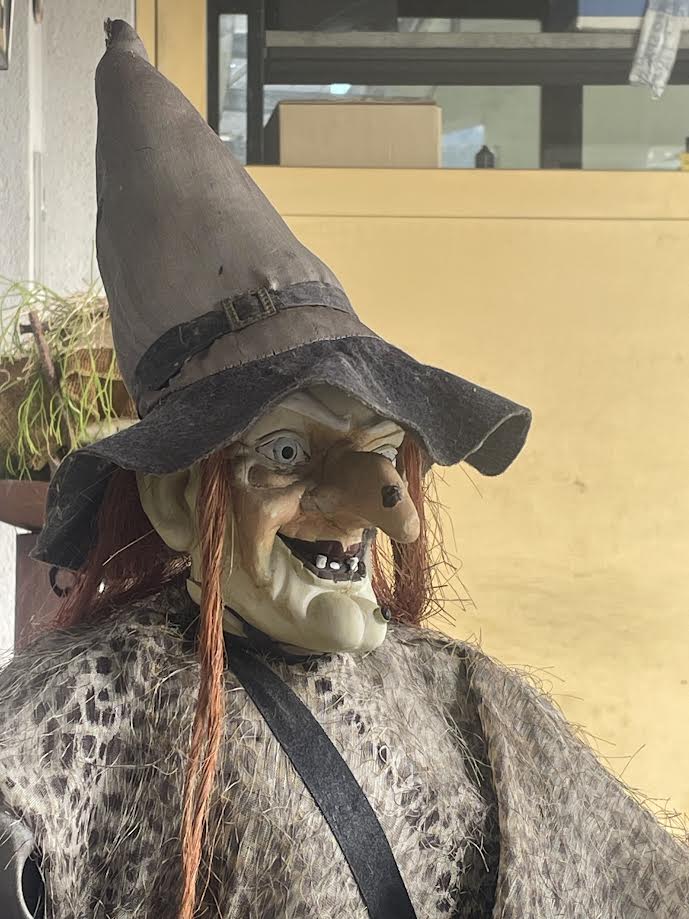 ベンチには、早いハロウィンなのか怖い顔をした魔女の人形が座っていて、良くない予感を盛り上げます(笑)