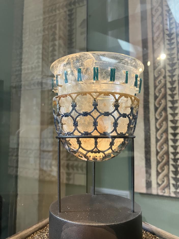 周りのすべて装飾含めてすべてがガラス。世界で最も美しい古代ガラスのひとつといわれる、1600年前のワイングラス