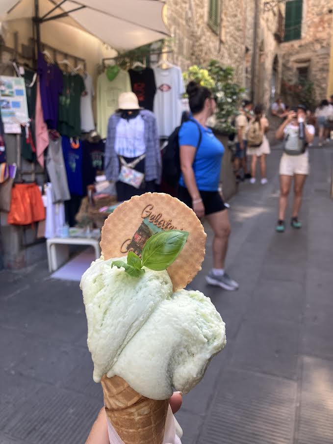 斜面には小さな家が貼りつくようにならび、だんだん畑のように葡萄やオリーブが植えられています。上から見ても下から見ても、村全体が可愛いジオラマを見るよう。