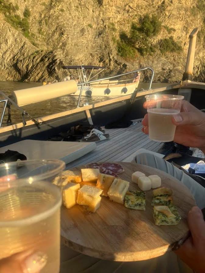 - 飲み物(ワインと水)、食べ物(チーズ、サラミ、フォカッチャ)はだいたいどこのボートでも込みのようでした