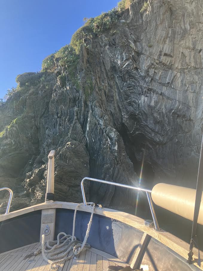 海から眺めるチンクエ・テッレ|切り立った崖も間近に