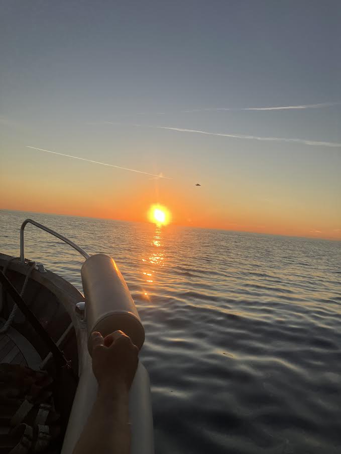 やがてお日様がだんだん海に向かって落ちてくると辺りはセピア色に染まり、チーズやサラミと辛口のスパークリングワインが回ってきて気分も最高潮。
